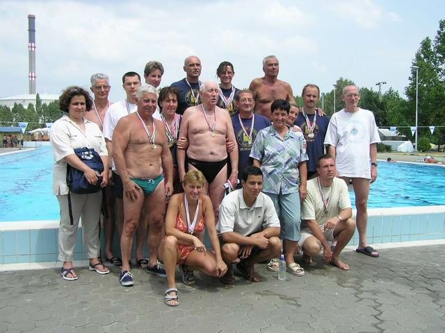 2004. július 24-25-én rendeztük meg az I. Százhalombattai Nemzetközi Szenior Úszóversenyt.