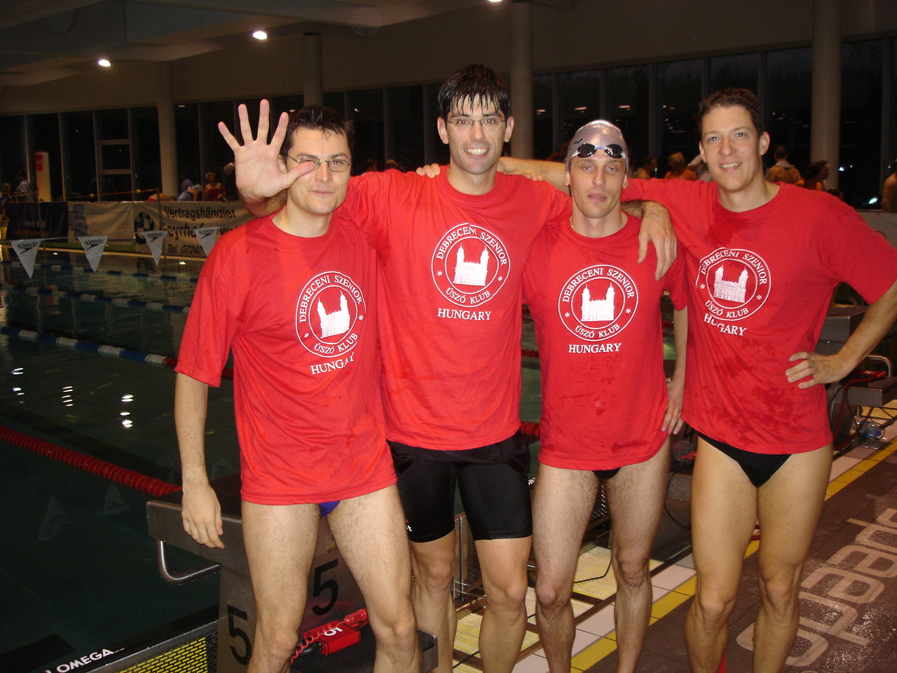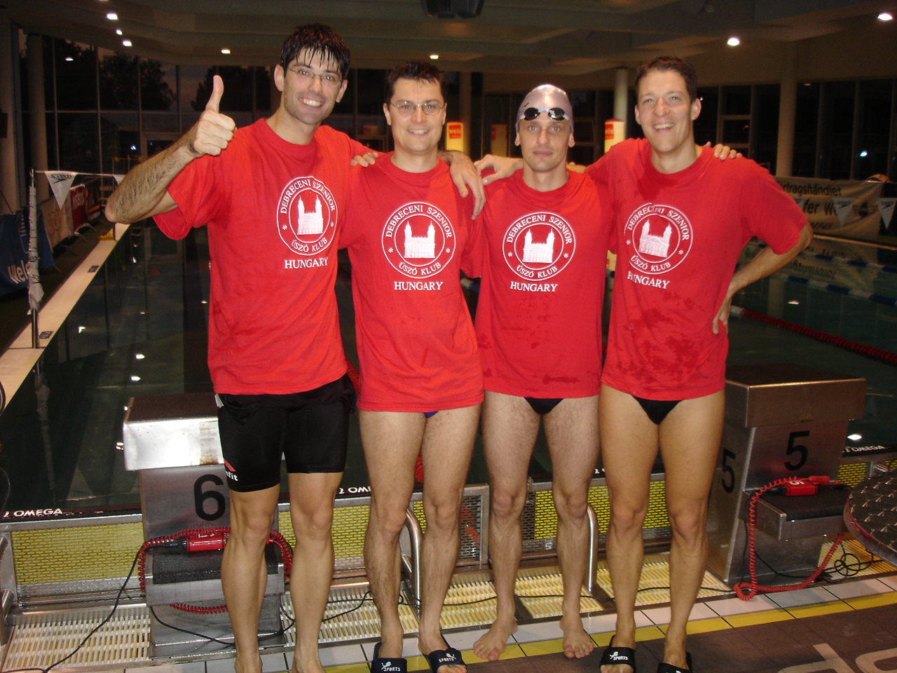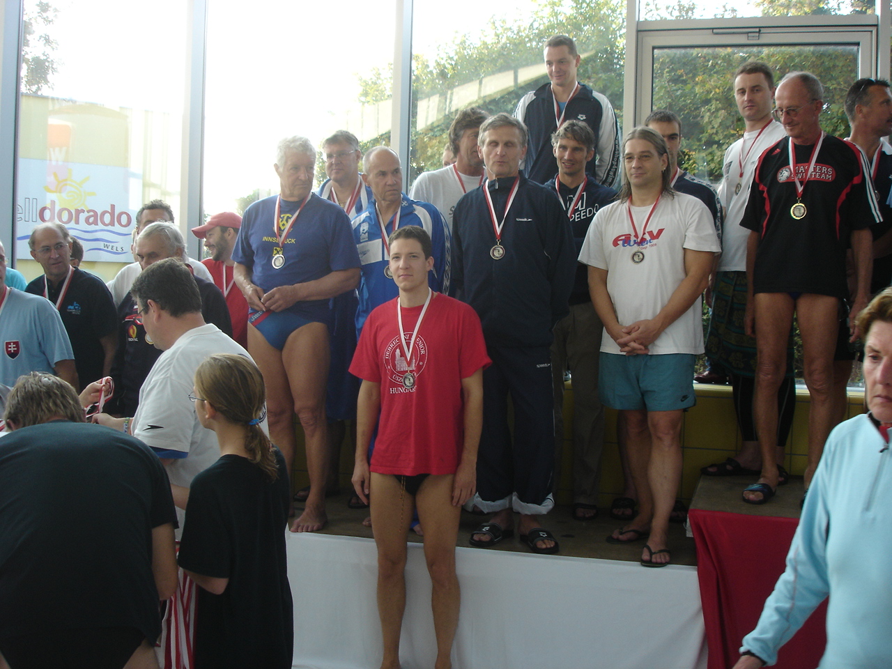 A Debreceni Szenior Úszó Klub négy fiatal, II. korcsoportú versenyzője indult az idei osztrák OB-n, amelyet Welsben, 25 m-es medencében rendeztek meg. 74 klub vett részt a versenyen, az osztrákokon kívül voltak még magyarok (két klub: a Debreceni Szeniorok és a Budapesti Delfinek), németek, csehek, szlovákok, románok, olaszok, svájciak, és egy kanadai klub is. A debreceniek eredményei ( a versenyszámok sorrendjében): 100 m hát (2.korcsoport): 2. Bitskey István 01:08,10 100 m gyors ( 2.kcs): 2. Bitskey Péter 00:58,14 100 m vegyes (2.kcs): 5. Bitskey István 01:09,01 4x50 m gyorsváltó (120-160 év közöttiek): 5. Debrecen 01:51.08 - Kurz Wolfgang (1975), 50m: 00:28,53 - Bitskey István (1974), 100m: 00:56,35 (00:27,82) - Kovacs Zoltan (1977), 150m: 01:24,38 (00:28,03) - Bitskey Péter (1975), 200m: 01:51,08 (00:26,70) Az első csapatfotón a Debreceni Szenior Úszó Klub váltójának tagjai balról jobbra ugyanilyen sorrendben szerepelnek. Kurz Wolfgang először indult egyesületünk színeiben. A részidőket is tartalmazza a jegyzőkönyv részlet. 50 m gyors (2.kcs.): 6.Kovács Zoltán 00:27,78 Ezen a honlapon megtalálható a teljes eredménylista: http://www.msecm.at/events/oemasters07/protokoll.pdf