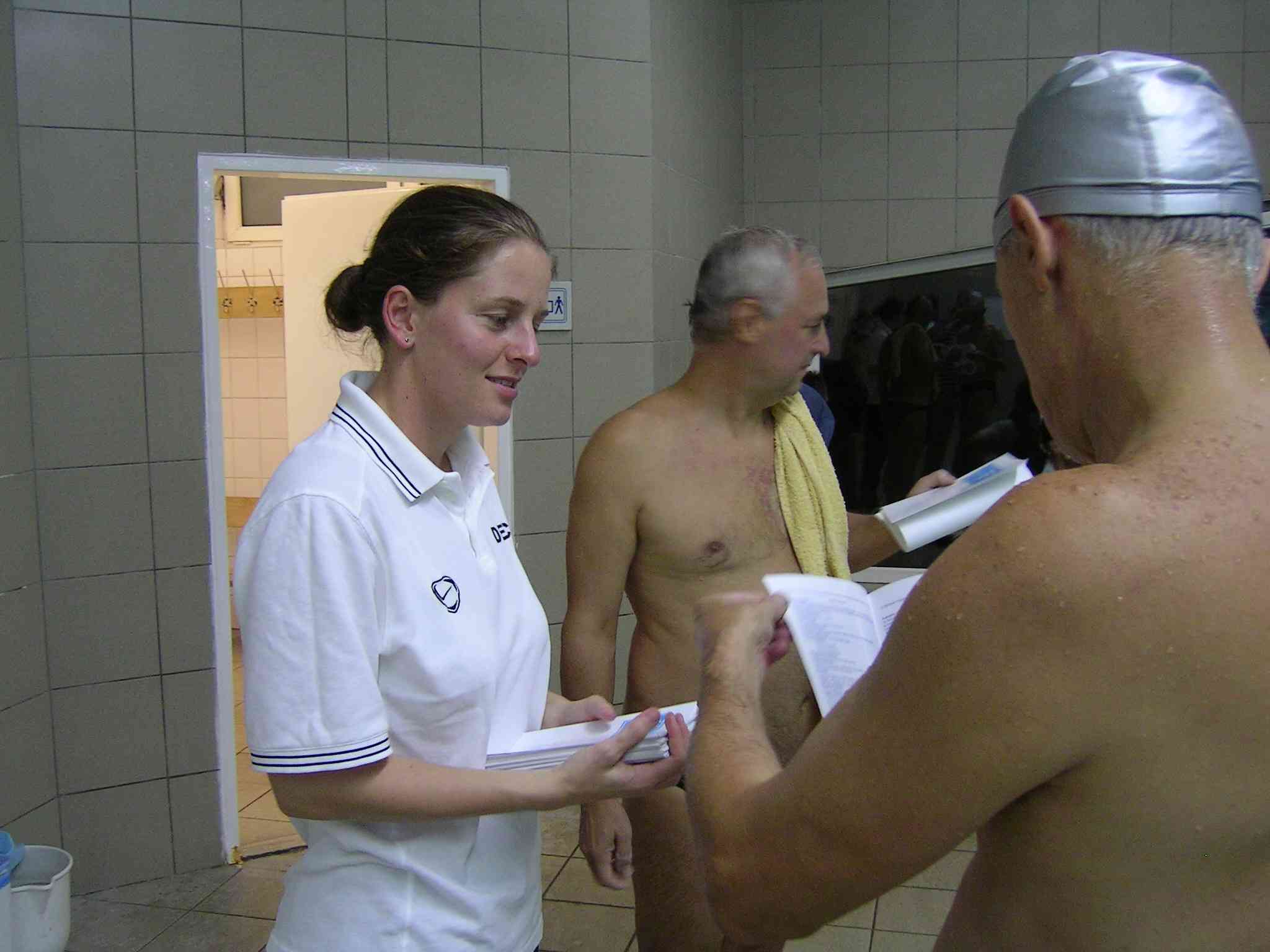 Sajnálatos, hogy a résztvevők száma csökkent a korábbi évekhez képest. Megállapítható, hogy az utóbbi három évben az első három helyezett sorrendje nem változott, ám az eredmények 2-4 másodperccel gyengébbek az eddigi legjobbaknál. Több esetben látható, hogy a hát vagy mellúszás javítására volna szükség az előre lépéshez. Az 1-3. helyezettek feliratos üvegdísz díjait Prof. Dr. Fésüs László rektor úr nyújtotta át a szeptember 15.-i, hagyományos professzori vacsorán, amelyet a díszudvarban rendeztek. A résztvevők ezúttal is egy elegáns, kék, DEAC-os pólóval gazdagodtak. A győztes Trócsányi Zoltán távollétében Bitskey István kétszeres szenior Európa bajnoki 7. helyezett köszönetet mondott a rendezésért, és az úszósport nagyszerűségét dícsérve kiemelte, hogy a Debreceni Sportuszoda immár mindenkinek rendelkezésére áll. Debrecen, 2007. szeptember 24. Dr. Batta Gyula | ||||