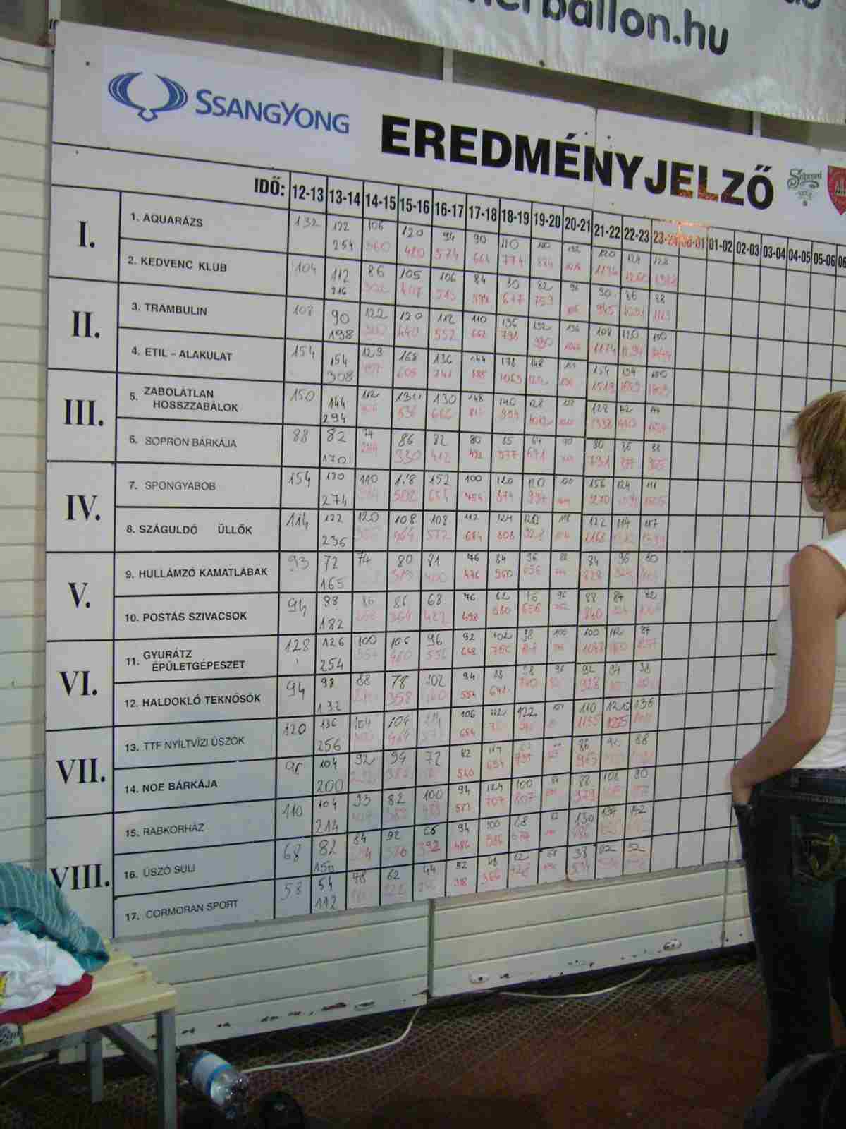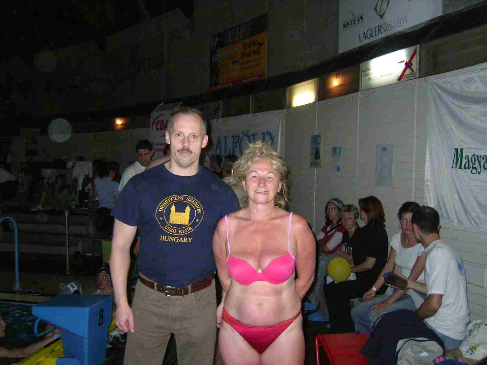 Íme, a másik történet: Sopron, 24 órás váltóúszás Vesszőfutás TOP 10 Fárasztó hétvégék TOP 10 A Megyebajnokság után szüleimnél (Debrecenben) megebédeltem, majd 15.08-kor Sopronba indultam, és 21.50 perckor a soproni vasútállomás lépcsőjén álltam. Telefont kaptam: 10-re értem jönnek. – Nagy darab vagyok, és a lépcső tetején állok! – mondtam. Felismertek. A Lővér Uszodában (Csík Ferenc emléktábláját és nevét viseli) egy valóságos népünnepély fogadott. Százon felüli parkoló kocsi, rendőrök, rendészek, diszkó hangulat, csuklópántos jelölés a ki-be járkáló csapattagoknak, VIP igazolványos „nem úszók”, fájdalomhatáron felüli hangerő, techno zene (mint kiderült, egész éjjel, sőt utána is!) És valami szokatlan: éjjel ugyan sötét van, de ennyire… Az uszoda belső terében csaknem teljes sötétség fogadott, a levegőben zöld lézerfények cikáztak, a levegő páradús, vagy talán szénsavhódús volt… Kezdetben nehezen láttam a medencét, később már köteleket, sőt úszókat is felfedeztem. Egy idő után a rajtkőről is vállaltam az indulást. Pályánként két csapat úszott, és mint felfedeztem, néhány csapat egyéni módon értelmezte a váltást: olykor nem csak előbb váltottak, hanem a part felé tartó csapattársuk e l é ugrottak rajtfejest, és alatta siklottak ki… Az ugrásokról a versenybírók különben lebeszéltek, a 15. kimászás után viszonylag könnyen elfogadtam ezt a tényt. Maradtak az erős elrugások. Körülbelül a 20. 33 1/3 méternél az elrugásnál erős rándítást éreztem a jobb kezem középső-, gyűrűs és kisujján (szokásos baleset, a „célszerűen” – két-három ujjat befogadóan – kialakított bójába szorultak az ujjaim… Az ujjbegyeimet sprintelés közben hüvelykujjas tapintással ellenőriztem, egyben voltak. A zsibbadás 20 perc alatt megszűnt, a vérzés nem. Ragtapaszt kaptam, amely 12 órán keresztül kitartott…) 23 órától óránként váltottak az úszó hármasok-négyesek. Én két csapatnál is maradtam, majd még 10 percig, hogy meglegyen az első 90 úszásom… Volt még egy órás szakasz, majd félórások, az utolsó órában negyedórások. Három perc híján öt órát voltam vízben, ezalatt minden 3. vagy 4. úszás volt az enyém a vasárnap déli lefújásig, az általam megtett 33 1/3 méterek száma 220 körül volt.