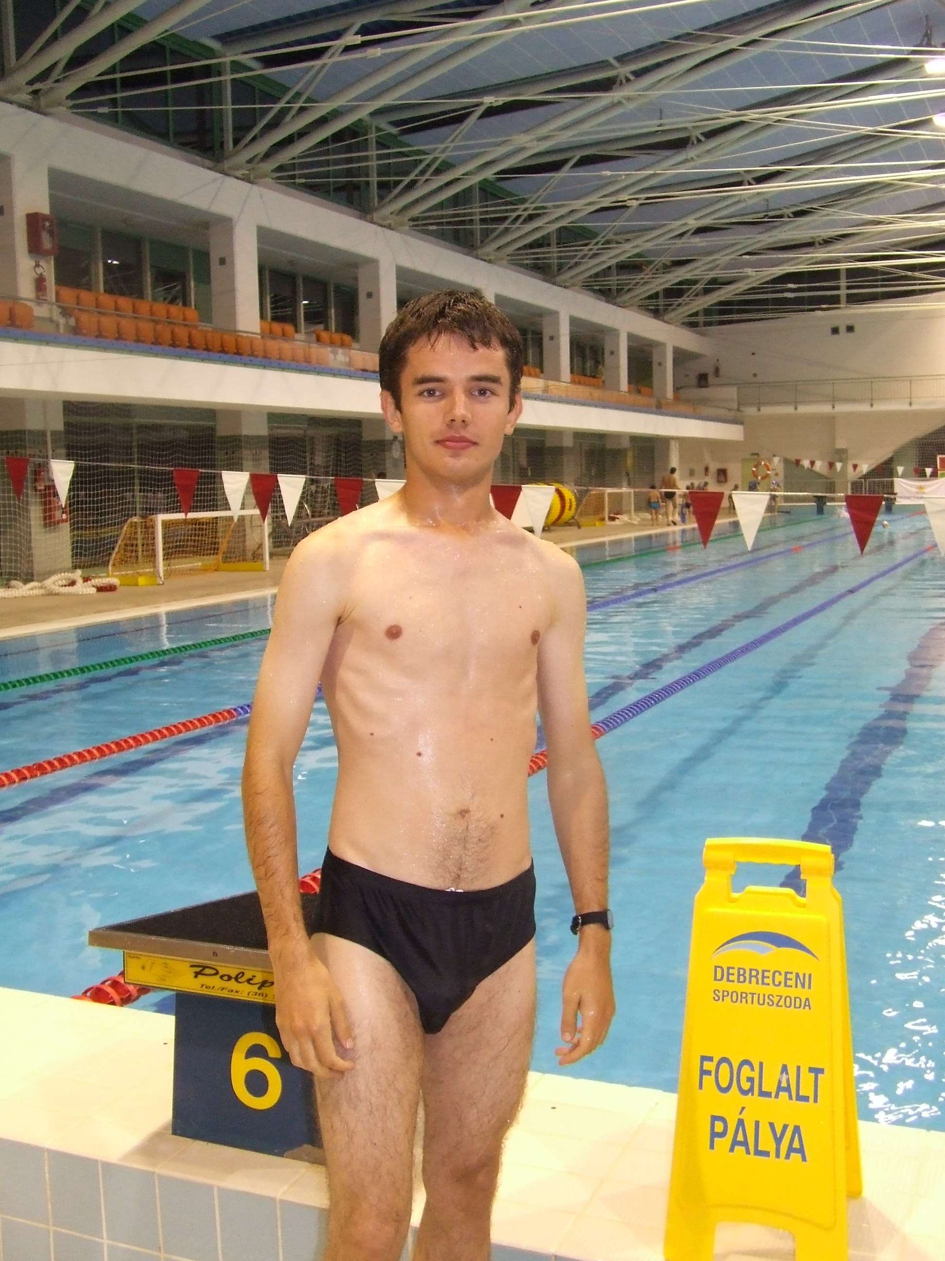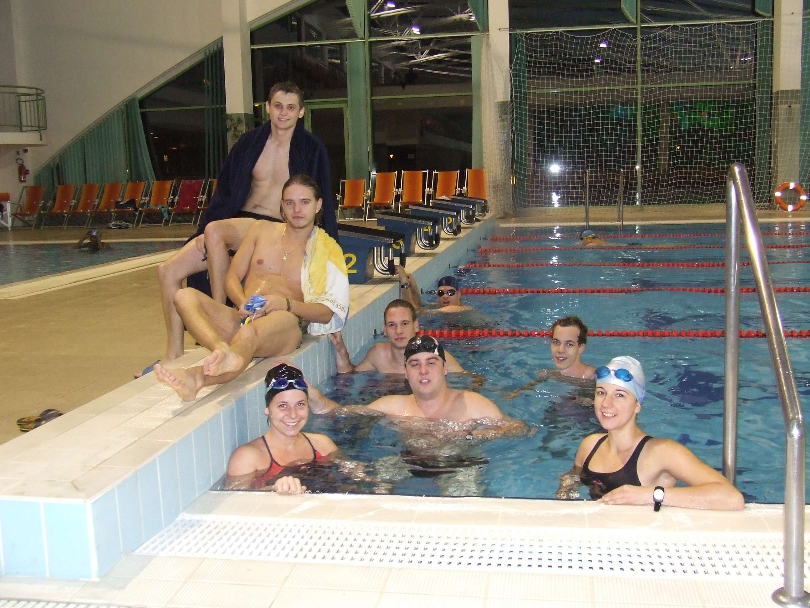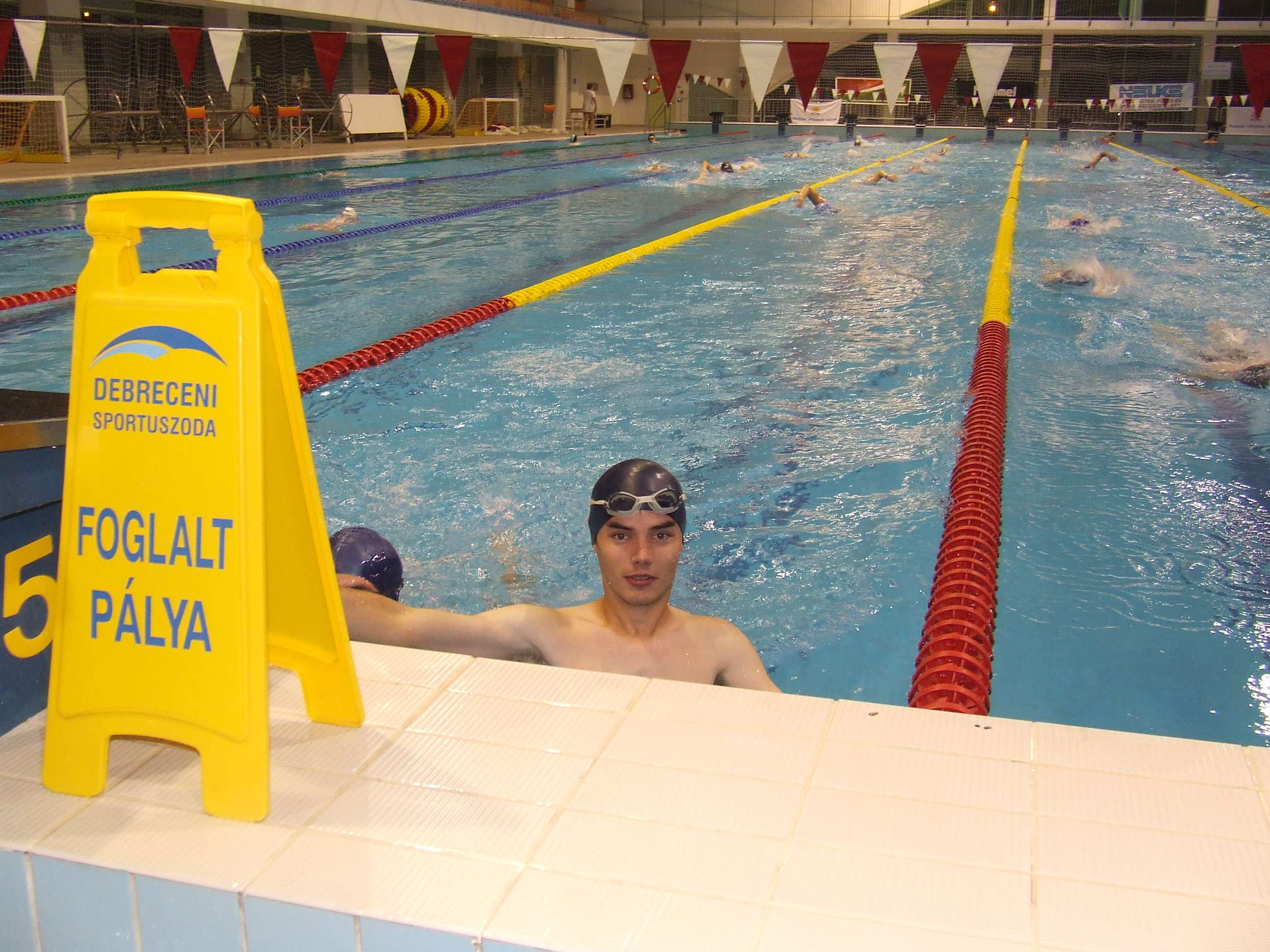 Szeptember 7-étől elkezdtük egymillió forintos vízfelületi támogatásunk elköltését (Debrecen Megyei Jogú Város Önkormányzata tavaly és idén is ennyi támogatásban részesítette egyesületünket, amelyet a Debreceni Sportuszodában pályabérlésre fordíthatunk). Hétfőn, szerdán és pénteken 19 órától tudtunk pályát bérelni, és meglepve tapasztaltuk, hogy a szomszédos pályákon jóval több a bérlőtárs, mint eddig: szerdánként például a 10 pályából 9-en folyt edzésmunka, és Debrecen város úszni vágyó 19-20 óra között egyetlen pályára szorultak. Mivel "oldalra" már nem terjeszkedhettünk, bevezettük a 20 óra körül kezdő második turnus bevezetését, amelyet főleg az egyetemistáknak és az "egészségükért úszó" csapattársaimnak ajánlottam. Három hétig tartott ez a beosztás. Október 2-án, pénteken újabb korszak kezdődött a Debreceni Sportuszodában: az 50 m-es medencében 20 órától zárásig valamennyi hétköznapon a Debreceni Vízilbda Egyesület tart edzést, a kapu mögötti területen olykor a Debreceni Harcsákkal osztozva a medencén. Néhány nappal korábban üzenetet kaptunk (szóban, telefonon és e-mailben), hogy 20 órától a 25 m-es medencében fejezzük be edzésünket (19 órától másfél órás bérlésünk volt eddig is). Ez tulajdonképpen kapóra jött nekünk, hiszen edzésünk gyosító részét praktikusabb 25 m-es pályán végezni, valamint 20 óra körül csapatunk többsége befejezi edzését és a melegvízben folytatja az estét, tehát a 25 m-es medencében két pályán elég jól boldogulunk. A 20 órakor kezdő későbbi csoport is beletörődött a megváltozott helyszínbe.(Az úszók már csak olyanok, hogy ott úsznak, ahol lehet...) Az október 7-ei, szerdai edzésen készítettem a mellékelt fotókat, és a heti edzésprogramot és az edzéseken született néhány időeredményt is elérhetővé tettem. Az edzést - kivételesen - egész héten a partról vezettem. Dr. Rentka László