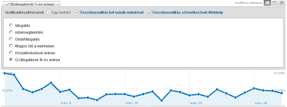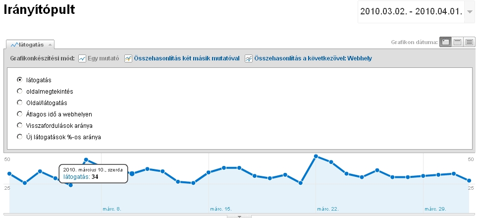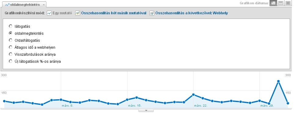 Ezen a grafikonon a napi látogatások darabszáma látható. Egy ideig úgy