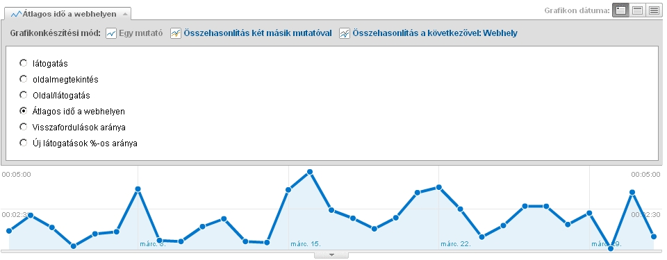 Az átlagos böngészési időn látszik, hogy március 15-én tettem fel egy hosszabb