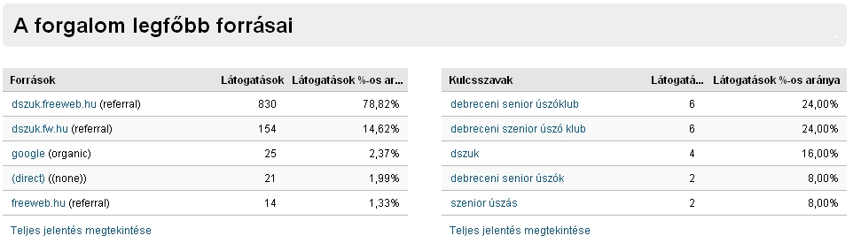 rendszerét a Debreceni Szenior Úszó Klub honlapjára. Pontosan egy hónapig figyeltem a forgalom