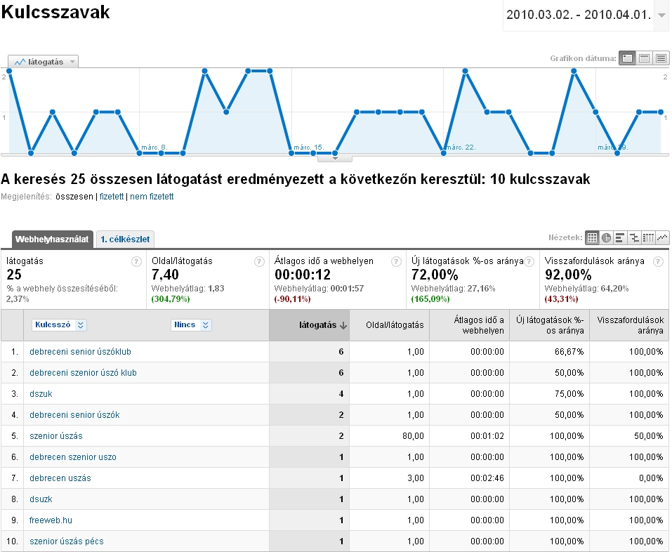 Március hó másodikán beállítottam a Google Analytics ingyenes forgalom elemző