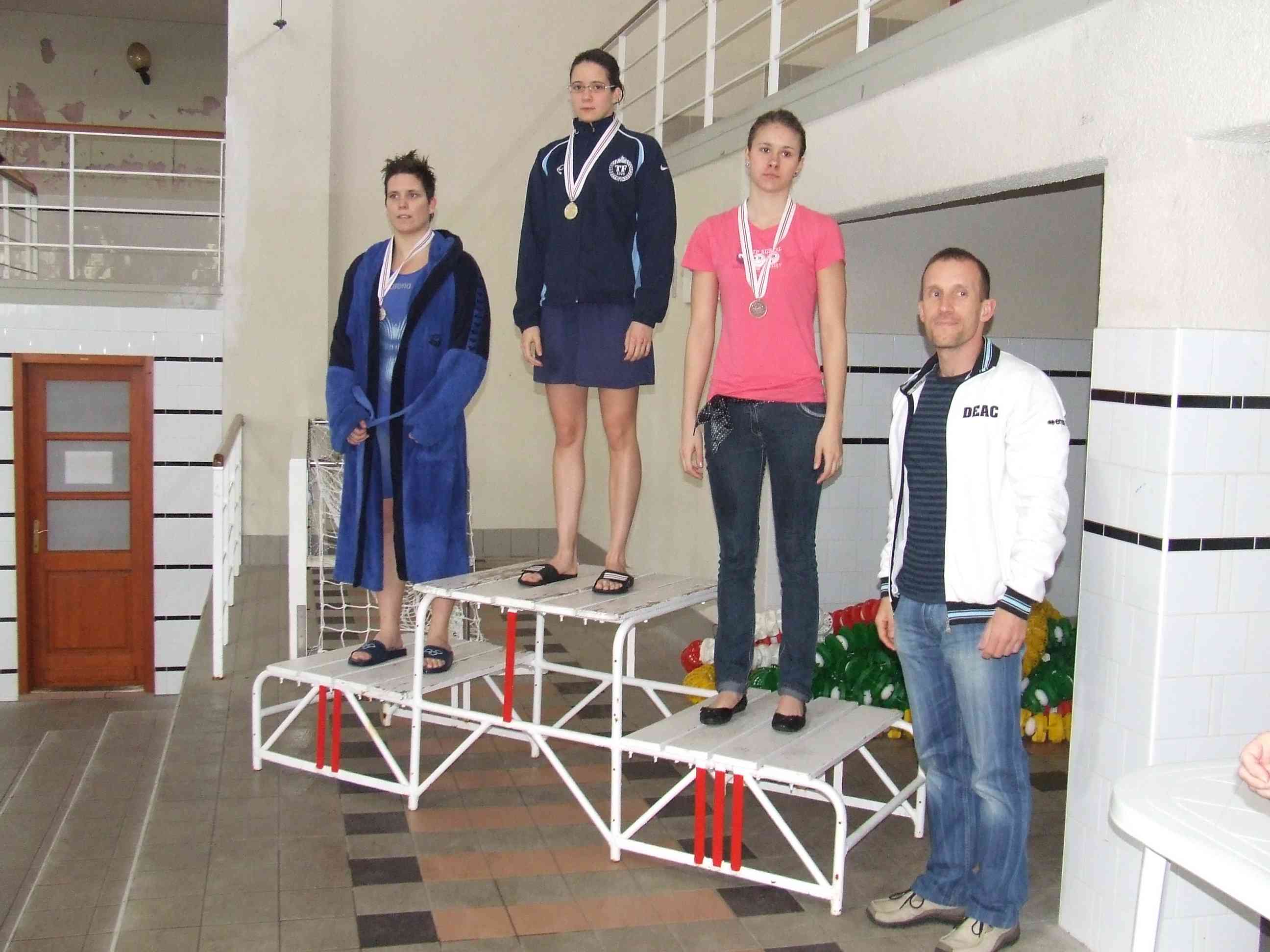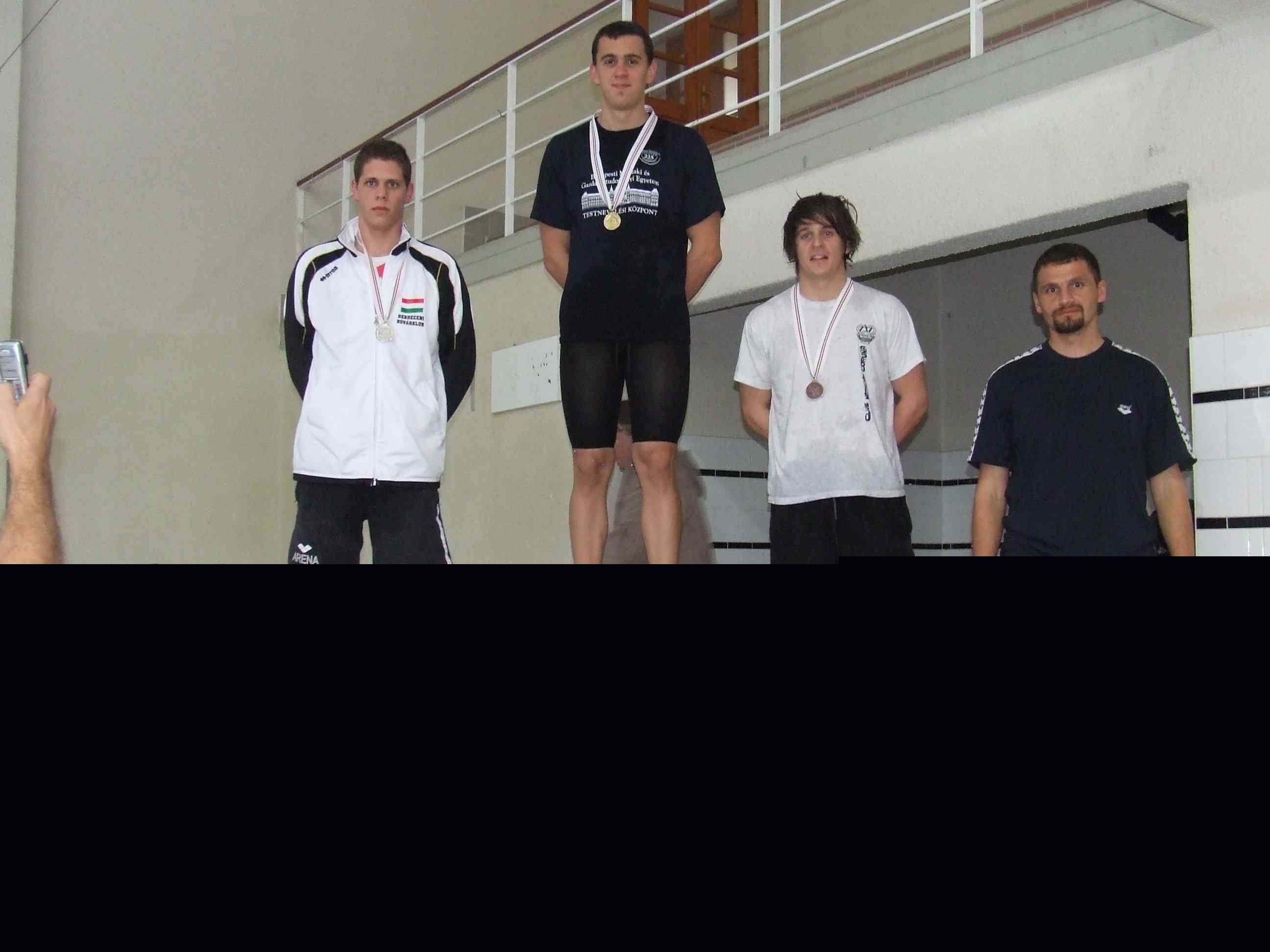 A 10x50 m-es intézményi gyorsúszó váltó Szenes Mátyás nagy úszásával (aki befutó emberként „repülő” váltással és kézi időméréssel 24,26 mp-et úszott!) az utolsó métereken előzte meg két riválisát és jutott fel a dobogó harmadik fokára. A váltó többi tagja: Szappanos Ádám, Pilló Zsolt, Varga Attila, Kelemen Máté, Fizil Ádám, Jakoda Ádám, Sóvágó Imre, Hudák István és Kókai Dániel. Mindhárom váltónemben második váltót is állított a debreceni csapat. Több egyéni induló volt pontszerző helyezés határán, eredményeikről és a pontverseny eredményéről néhány nap múlva, a versenyjegyzőkönyv ismeretében tudunk nyilatkozni.