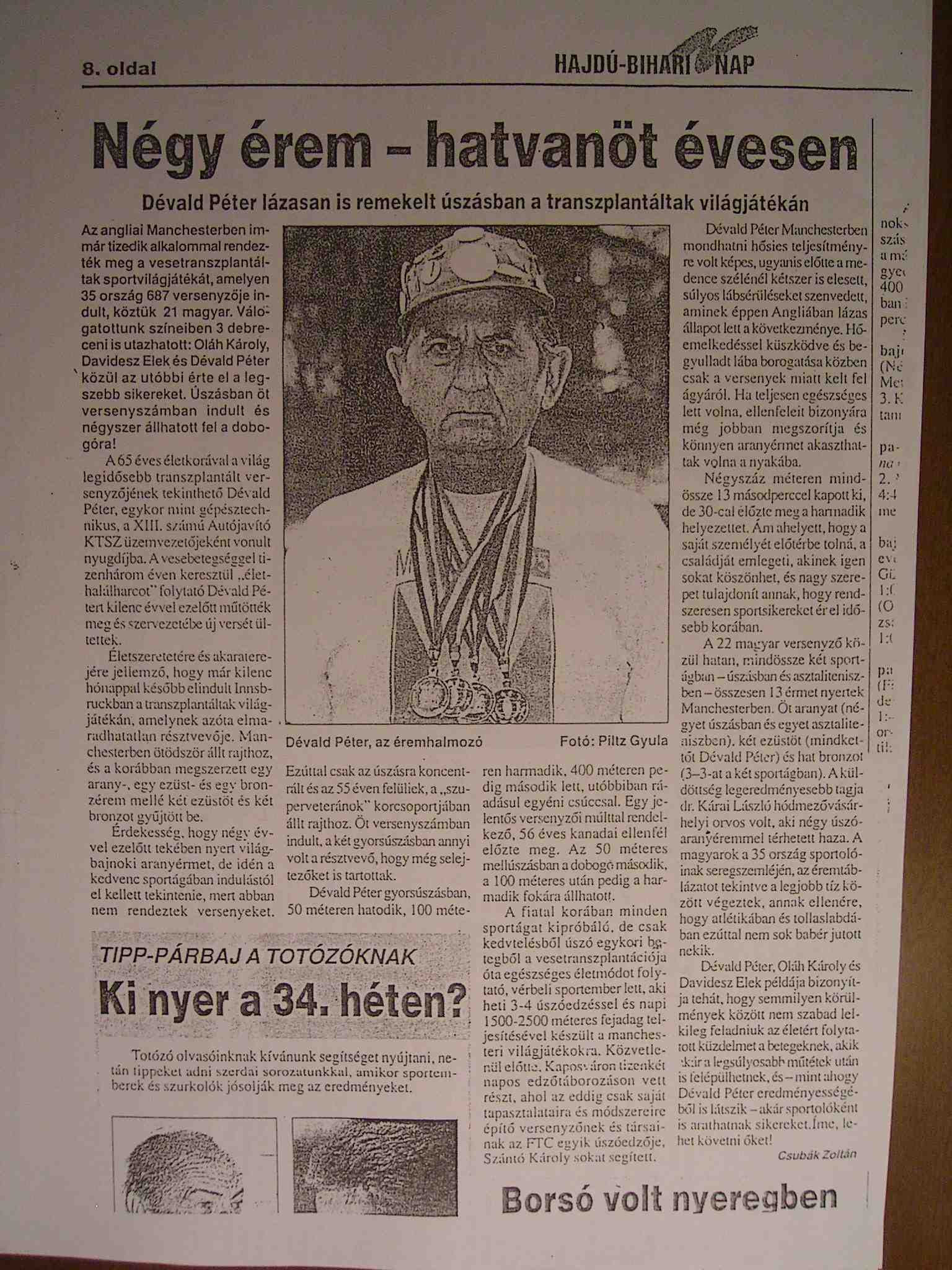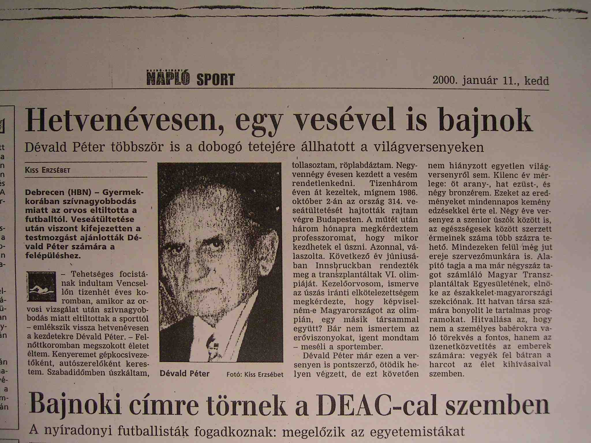 Dévald Péter, a Debreceni Szenior Úszó Klub tagja, transzplantált