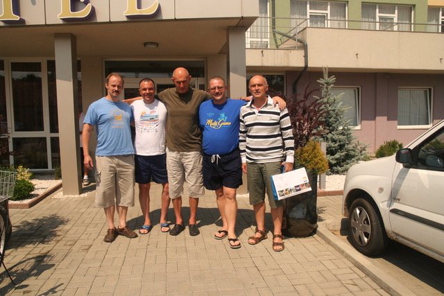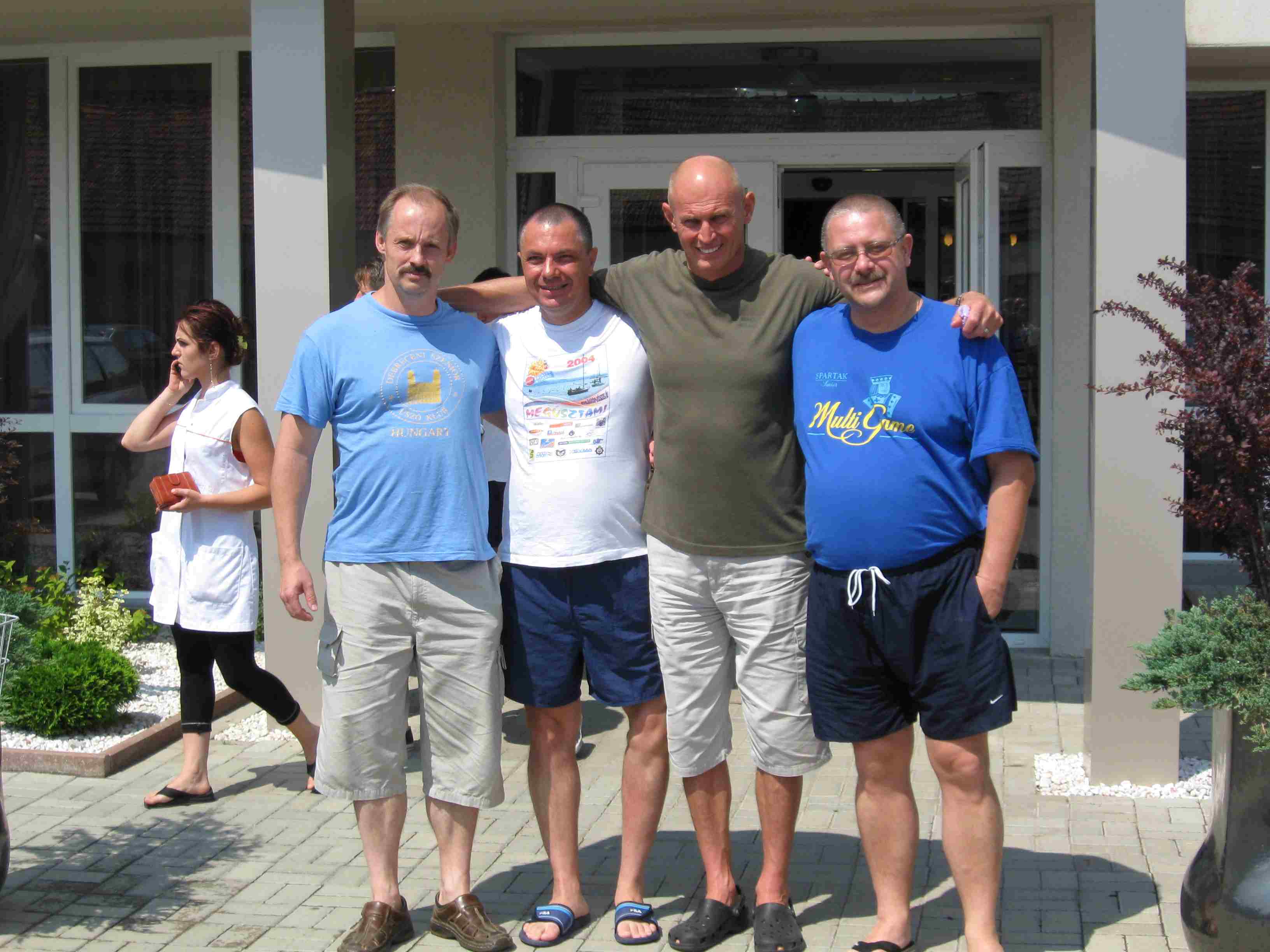 Végig az egész rendezvény alatt Laci felszabadult volt ezen a képen másik három Lacival, a szállásunk előtt állnak.