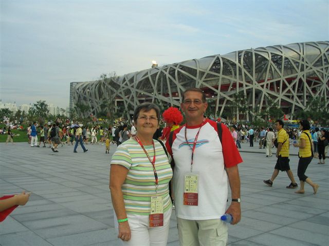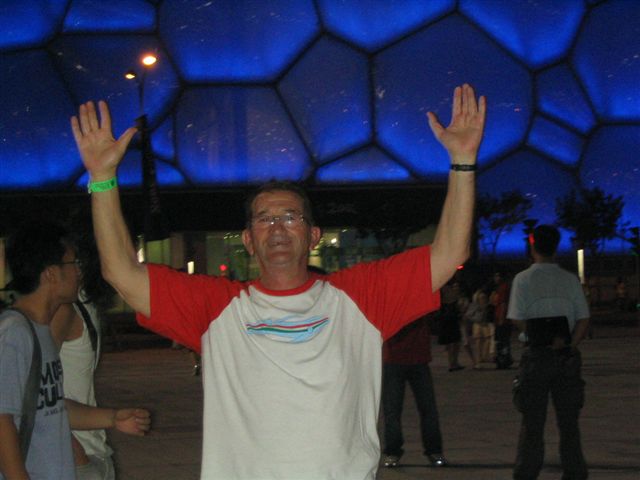 Kinában fontos szerencse szám a nyolcas / 8 /, de ez a szám nekem is szerencsét hozott. Az Olimpia nyitóünnepsége 2008.08.08 .-án 8 óra 8 perckor volt . Én tagja lehettem 8 napig Pekingben annak 8 tagu E-on csapatnak , akik egy internetes regisztrációs - " adjunk közösen energiát "- játékon, főnyereményként utazást nyert. Augusztus 16. - 25.- ig élveztük Pekingben a Pegazus Sport - Tours Kft. utazási iroda vendégszeretetét a négy csillagos Longmail Hotel -ban. Az elhelyezés érdekessége az , hogy a hotel területén működött a Magyar Olimpiai Klub és a Pekingi Szurkolói Klub. Az Olimpiai Klub vendéglátói 22 régi olimpiai bajnok, akikkel kötetlen beszélgetések, találkozók alakultak ki és személyes jelenlétükkel tették még szinesebbé az ott tartózkodásunkat. Találkoztam Dr. Kárpáti György, Czene Attila, Kovács Ági, Rózsa Norbert, Németh Angéla, Dr. Magyar Zoltán, Dunai Antal, Koko, Pullai Imre, Szabó József, és még sok régi olimpiai bajnokunkkal. Az klubban minden este program keretében az olimpián résztvevő sportolók is vendégeskedtek, így jártak a nálunk a kajakosok, vivók, atléták, úszók, és igy került sor Cseh Lacival személyes beszélgetésre. A játékokra 6-6 belépőt kaptunk : üldözéses kerékpár férfi-női döntők, strand röplabda, birkózás, ökölvivás, vizilabda elődöntő -Magyarország-Montenegró mérkőzés igazi csemege volt számomra,- atlétikai versenyek a " madárfészek " stadionban igen nagy élményt jelentettek. A stadionok, uszodák és csarnokok fantasztikus építmények, a modern építészet csodái. A sport események látogatása mellett igyekeztünk Peking nevezetességeit is felkeresni. Amit érdemes megnézni az utikönyv szerint azt mi megnéztük,: a Kinai nagyfalat, Tienanmen teret, Tiltott várost, Nyári palotát, Láma templomot, Ég templomát, bemerészkedtünk egy hutungba is mely egy jellegzetes kinai épitészeti stilus, kialkulásuk 700 évre vezethető vissza. E nyolc nap tapasztalata alapján mondhatom, hogy Peking egy lüktető sok arcu 14 milliós nagy város, az Olimpiára készülés négy éve alatt óriási fejlődésen ment keresztül - mesélték a Kinában tanuló egyetemisták-. Az olimpiák után hogyan tudják megőrízni és tartóssá tenni a tisztaságot, rendet, a szmog mentességet, a virágos város részeket, nem tudom - remélem, hogy megoldják.- A méretekre jellemző, hogy egy-egy stadion megközelítése kb. 2 - 2 és fél órai utazást jelentett, metróval és gyalogszerrel. Ha valahol segitségre volt szükségünk akkor a városban mindenhol jelen voltak és segitettek az önkéntesek , - mindezt kedvesen és mosolygósan -.