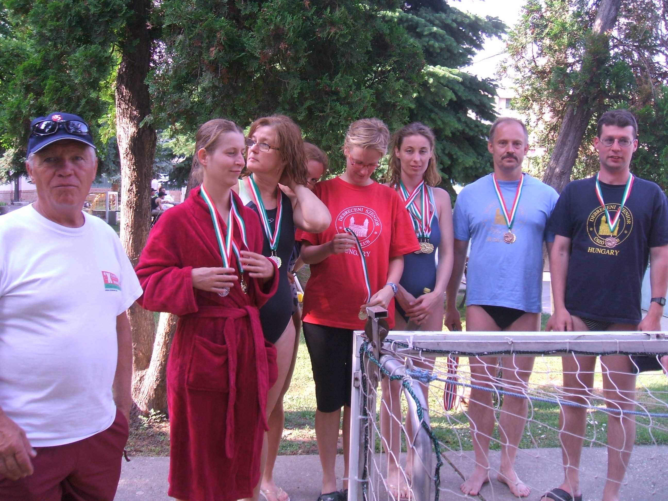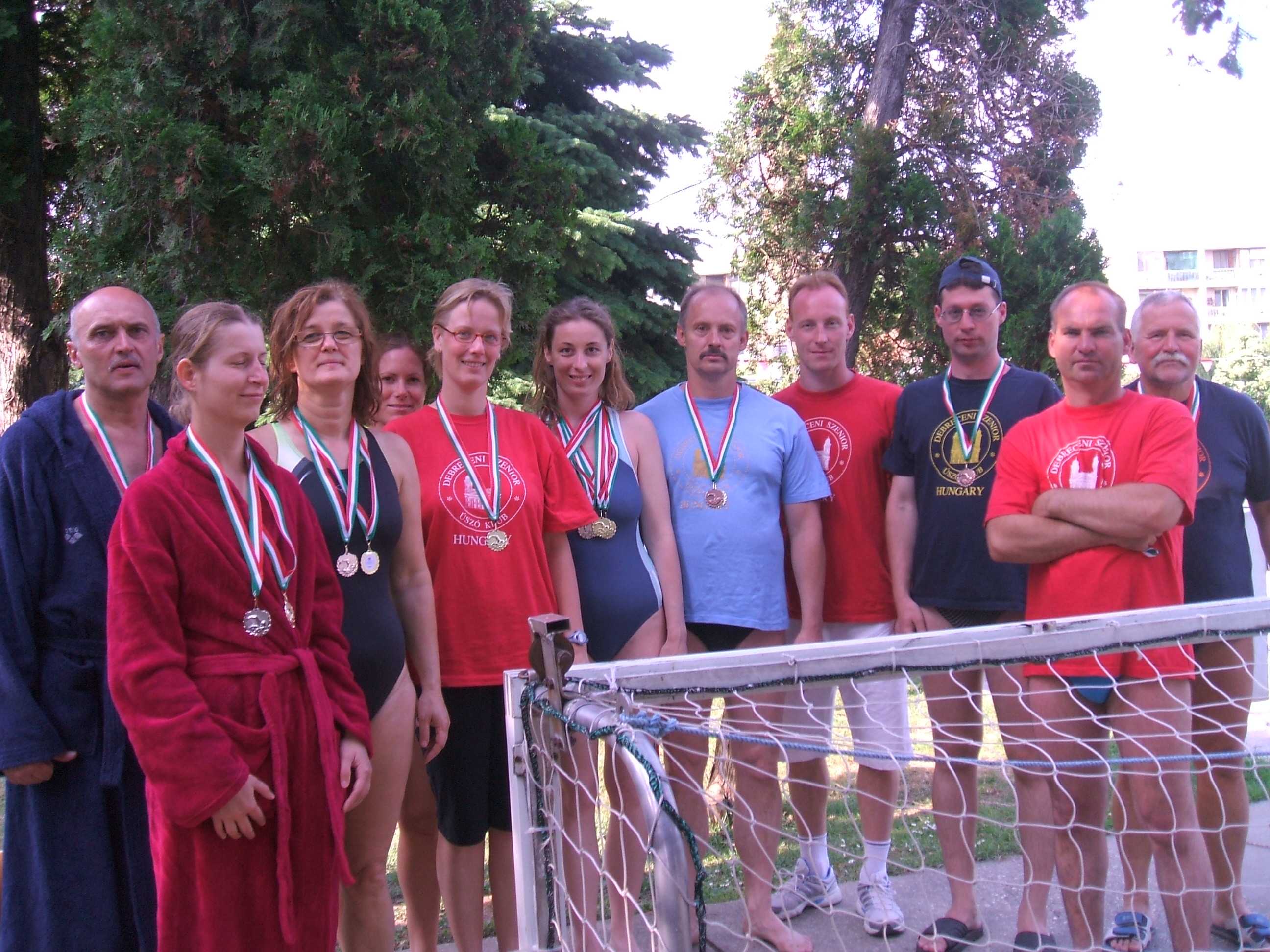 A debreceni csapat tagjai közül öten csak szombaton a többiek mindkét napon versenyeztek. Az eredményeket a www.magyar.sport.hu/uszas honlapon néhány nap múlva olvashatjátok. A debreceni csapat két új első versenyes tagja Horonyi Petra (1984), Szabó Marietta (1956) és Nádor Kinga (1978) sikeresen mutatkozott be első versenyén. Reméljük további versenyeken is találkozunk velük!