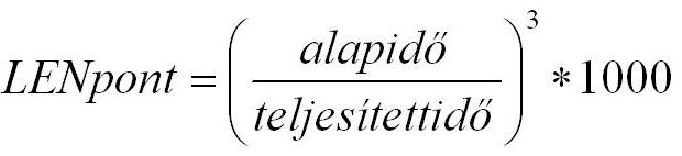 Ezzel a képlettel készítettem el a LEN pont számítást minden időeredményre,