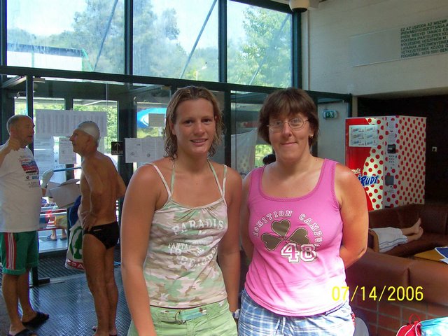 Visszatérve a medencei verseny várva várt eredményeire: Németh Zsolt ígérete után augusztus 28-án fel is fedeztem a www.magyar.sport.hu/uszas honlapon a teljes versenyjegyzőkönyvet (a főoldalon a 2006. évi versenykiírások és eredmények táblázatban BALATONI ÚSZÓ ÜNNEP versenykiírással és 2006. július 14-15. Uszodai eredmények címen, melyből magyarázatok hozzáfűzésével mazsolázok… Igen hangulatos például, hogy a versenyszámok többségénél a jegyzőkönyvben szerepel az országos (felnőtt) csúcs, bár a mi eredményeink és az országos csúcsok összehasonlításának nem sok létjogosultsága van a korosztályos beosztáson alapuló, nyolcvan éven felülieket is versenyeztető masters sportban… Az országos felnőtt csúcsok inkább egzotikumként kezelendők! Balatonfűzfő 2006. július 14-15. 2006. július 14., péntek (A jelzés nélküli versenyzők a Debreceni Szenior Úszó Klub tagjai.) A versenyen kézi időmérés volt. 50 m férfi gyorsúszás V. korcsoport 1. Dr. Rentka László 1957 0:29,5 I. korcsoport 1. Dr. Sándor Roland 1980 0:29,9 (Miskolci Vízművek SC)* 50 m női gyorsúszás Országos csúcs: 0:26.36 (Jakab Dóra - 1998) III. korcsoport 2. Nagy Emese 1968 0:35,8 I. korcsoport 4. Dr. Telek Andrea 1977 0:41,5 200 m férfi mellúszás Országos csúcs: 2:10.75 (Gyurta Dániel - 2004) V. korcsoport 1. Dr. Rentka László 1957 3:14,8 200 m női mellúszás Országos csúcs: 2:24.03 (Kovács Ágnes - 2000) III. korcsoport 1. Nagy Emese 1969 3:42,1 Nagy Emese a budapesti EB előtt Balatonfűzfőn edzőtáborozó Kovács Ágnes országos csúcstartó, olimpiai-, világ- és Európa-bajnok mellúszó társaságában Dr. Telek Andrea fotóján: (honlapunkon) 50 m férfi hátúszás Országos csúcs: 0:25.56 (Cseh László - 2006) V. korcsoport 1. Dr Rentka László 1957 0:37,3 I. korcsoport 1. Dr. Sándor Roland 1980 0:47,5 (Miskolci Vízművek SC)* 50 m női hátúszás Országos csúcs: 0:29.29 (Szepesi Nikolett - 2004) VIII. korcsoport 1. Balla Mária 1944 0:39,8 (Újbuda Senior)** III. korcsoport 1. Nagy Emese 1969 0:42,1 I. korcsoport 3. Dr. Telek Andrea 1977 0:45,9 200 m férfi pillangóúszás Országos csúcs: 1:57.80 (Cseh László – 2004) V. korcsoport 1. Dr. Rentka László 1957 3:17,5 200 m női pillangóúszás Országos csúcs: 2:07.68 (Risztov Éva - 2003) III. korcsoport 2. Nagy Emese 1969 3:28,7 400 m férfi vegyesúszás Országos csúcs: 4:09.63 (Cseh László - 2005) V. korcsoport 1. Dr. Rentka László 1957 6:13,2 400 m női vegyesúszás III. korcsoport Új korcsoportos csúcs! 1. Nagy Emese 1969 7:00,5 4x50 m férfi gyorsváltó Országos csúcs: 3:25.27 (Ferencvárosi Torna Club - 2004) Ez természetesen a 4x100 m-es gyorsváltó csúcsa… II. korcsoport 1. Debreceni Senior II*** 2:06,4 Bacsa György (1967)***** - Dr Rentka László (1957) - Sándor Roland (1980)* - Dr Szűcs Gyula (1960)**** A 200/2006. sz.ámú, 2006. július 27-én elküldött körlevelet versenymagyarázatként mellékelem: ![]() A Balaton Masters Games három napos versenysorozat (2006. július 14-16-án Balatonfűzfőn és Balatonalmádiban, medencében és a Balatonban) sokszoros debreceni sikert hozott. Érmeinket még számoljuk, de a versenyfotókon halmozott dobogós jelenlét érhető tetten (lásd honlapunkon, Vas András fotói között!) A díjakat a szombati versenynapon Cseh László adta át. A szeniorok versenye előtt a magyar válogatott edzett a medencében, erről is több fotó készült. Az alábbi Kovács Ágit és Nagy Emesét ábrázoló képre is felhívom a figyelmet! ![]() Nagy Emese, Kovács Lukácsné, Telek Andrea, Rentka László, ifjabb és idősebb Bitskey István, Nagy István (Szentes óta versenyez velünk) valamennyien a dobogón végeztek a balatoni hosszútávú versenyeken és több medencei versenyszámban. Nagy Emese a 400 m-es vegyesúszásban országos alapcsúcsot úszott (7:00,50), melyet a MÚSZ Szenior úszó Alszövetsége visszaigazolt. * Dr. Sándor Roland miskolci úszótársunk a versenyen bejelentette, hogy a gyulai országos bajnokságon már debreceni színekben kíván indulni. (Beszúrás 2006. augusztus 28-án: Így is történt! Roland több dobogós helyezést ért el Gyulán. Három országos csúcsot elért váltóban is szerepelt, a következő, figyelemre méltó eredményekkel – mindháromszor 50 m gyorsot úszott a váltókban, Fábián Ákos kézi mérésével 29,99 mp, 30,10 mp és 29,90 mp idő alatt. Megbízható formának tűnik ez a 30,00+-0,10 mp-es sorozat!) További magyarázatok 2006. augusztus 29-én, a magyarázó Dr. Rentka László: ** Balla Mari a szívem csücske! 1963-ban (6 éves koromban) kezdtem el Debrecenben úszóedzésre járni, Balla Mari akkor 19 éves volt, és a tokiói olimpiára készült Debrecenben Gulyás Ákossal együtt. 1964 elején mindketten a fővárosban folytatták az úszást. Számomra évtizedekig ők voltak AZ ÚSZÓK! Közös edzőnk, id. Rentka László szinte naponta idézett fel valamilyen történetet velük kapcsolatban. Balla Mária „atyám”, id. Rentka László 75. születésnapján az uszodai találkozón (Debrecen, Újkerti tanuszoda) az egyik főszervező és fő köszöntő volt. Örömmel fedeztem fel a szeniorok között. Idei Világbajnoki szereplését a szeniorok honlapjáról mellékelem: Balla Mária 100 m hátúszás 1:22.85 2. helyezés Balla Mária 200 m hátúszás 3:04.69 3. helyezés Balla Mária 50 m hátúszás 0:37.86 3. helyezés A három hátúszó számon kívül egy 2., egy 3. és egy 6. helyezett váltóban is úszott. Az idézet folytatása a 200/2006. sz. körlevélből, * jelölésekkel: *** 2006. július 14-én egy debreceni kötődésű nosztalgia-váltóban győztünk Balatonfűzfőn, melynek tagjai: Dr. Szücs Gyula**** és Bacsa György***** egykori tagok, Dr. Sándor Roland* eljövendő tagunk és a cikkíró Dr. Rentka László. **** Dr. Szücs Gyuláról (részlet a 221/20