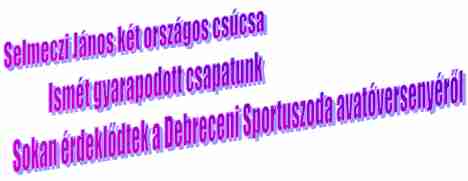 ![]() A IX. alkalommal megrendezett Bitskey Aladár Nemzetközi Szenior Úszó Emlékversenyen 29 fős csapattal álltunk ki Egerben (most is akadt új versenyzőnk Péli István (1966) személyében, aki a miskolci szárnyat képviseli (a versenyen Jurák Árpád, Kis Róbert, Éder Zsolt és Dr. Sándor Roland volt jelen még közülük). Jó versenykörülmények, erős mezőnyök, sok külföldi versenyző jellemezték a versenyt. Csapatunkból szinte mindenki elégedett volt egyik vagy akár több úszásával (részletezés és csapatvezetői szakmai értékelés a jegyzőkönyv ismeretében várható). Selmeczi János (1931) a 200 méteres férfi mellúszásban országos korosztályos csúcskísérletet jelentett be. (A 200 m-es gyorsúszásban versenyen kívül, mellen úszott.) Az új csúcs 3:59,30 mp, 22 mp-cel jobb az előző csúcsnál! 100 méteren izgalmasabb eredmény született: saját gyulai csúcsát 0,02 mp-cel javította meg! Gratulálunk, János! A váltók összeállítása most is Miklós Attila számítógépes programján és személyes közreműködésén alapult. Talán nem véletlen, hogy a Jurák Árpi által javasolt „álomváltót” is kidobta a gép… (4x50 m férfi vegyes váltó, Éder Zsolt (háton 33,58 mp), Dr. Rentka László (mellen 38,22), Jurák Árpád (pillangón 31,47 mp) és Krasznai Róbert (gyorson 33,24 mp), összesen 2:16,51, mp, második helyezés a 200 éven felüli korcsoportban. A részidők és az összidő az edzésfüzet adataira épülnek.) A verseny során szinte valamennyi csapat néhány versenyzője odajött hozzánk és a Debreceni Sportuszoda avatóversenyéről érdeklődött. A jelenlegi információink: az uszoda műszaki átadása szeptember 15-én megkezdődött. Várjuk a próbaüzem azon szakaszát, amikor a lakossági úszás keretében, várhatóan díjtalanul úszhatunk a 10 pályás 50 m-es és a 6 pályás 25 méteres medencében, lazíthatunk a melegvizes benti és szabadtéri medencékben. A 2006. október 15-ei ünnepélyes avatóversenyre a verseny előkészítői a leglátványosabb 4x50 m-es mix vegyes váltóra hívták meg a szeniorokat (az ország valamennyi szenior klubjának versenyzőiből összeállítva, Európa-bajnok és világbajnok versenyzőtársak szerepeltetésével egy futamot állíthatunk össze). Bővítési terveimet mellékelem: levél Omaisz István részére 222. Megjegyzés: A levelezés a honlapunkon a Ti írtátok! rovatban olvasható A Magyar Marathon Klub 2000 m-es medencei távúszását eddig két alkalommal rendeztük meg Hajdúszoboszlón, Dr. Batta Gyula itt tűnt fel, majd csatlakozott hozzánk (Honlapunk Archívumából három írást ajánlok e témakörben.) Idén október 8-ára tervezik a verseny kiírását, amelyet az új uszoda próbaüzeme alatt egész napos rendezvényként szeretnénk megrendezni két vagy három pályán (az uszoda 6 órától 22 óráig tart nyitva!) A versenykiírás tervezet a Magyar Marathon Klub honlapján elérhető. 2007. január 20-21-ére az Országos szenior idénynyitó versenyt szintén Debrecenbe, az új sportuszodába tervezi a MÚSZ Szenior Úszó Alszövetsége (mint ismeretes, Debrecenben, az Újkerti tanuszodában 1999 óta rendezi meg Klubunk a szenior úszók idénynyitó versenyét. A rendezvény versenykiírásában és oklevelein – a 33 órás váltóúszásaink okleveleit is beleértve –azóta szerepel a következő szöveg: „Rendezvényünk újabb szakmai érv a debreceni 50 méteres fedett sportuszoda megvalósítása mellett!” Egy írást ezzel kapcsolatban is mellékelek: Idénynyitó úszóverseny 2001).Megjegyzés: Az írás a honlapunkon az Archívumban olvasható A versenyen többen fotóztak, a képek néhány napon belül honlapunkra kerülnek: Vas András képgalériája a Fényképek rovatból is elérhető! Sőt Néhány kép Egerből, 2006. szeptember 16-17. már a honlapunkon található Miklós Attila jóvoltából! Jó olvasást és böngészést kívánok! Debrecen, 2006. szeptember 17-18. Dr. Rentka László a Debreceni Szenior Úszó Klub elnöke Mobil: 06-30-742-5244 e-mail: rentkaszenior@freemail.hu |