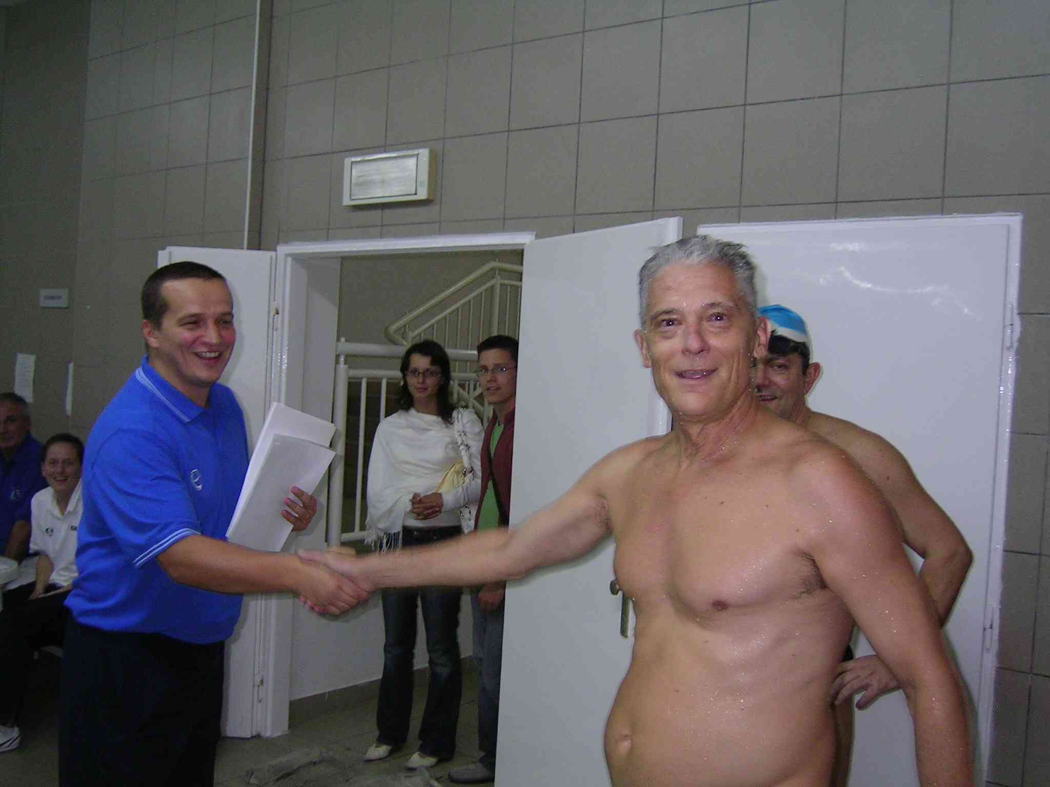 Sajnálatos, hogy a résztvevők száma csökkent a korábbi évekhez képest. Megállapítható, hogy az utóbbi három évben az első három helyezett sorrendje nem változott, ám az eredmények 2-4 másodperccel gyengébbek az eddigi legjobbaknál. Több esetben látható, hogy a hát vagy mellúszás javítására volna szükség az előre lépéshez. Az 1-3. helyezettek feliratos üvegdísz díjait Prof. Dr. Fésüs László rektor úr nyújtotta át a szeptember 15.-i, hagyományos professzori vacsorán, amelyet a díszudvarban rendeztek. A résztvevők ezúttal is egy elegáns, kék, DEAC-os pólóval gazdagodtak. A győztes Trócsányi Zoltán távollétében Bitskey István kétszeres szenior Európa bajnoki 7. helyezett köszönetet mondott a rendezésért, és az úszósport nagyszerűségét dícsérve kiemelte, hogy a Debreceni Sportuszoda immár mindenkinek rendelkezésére áll. Debrecen, 2007. szeptember 24. Dr. Batta Gyula | ||||