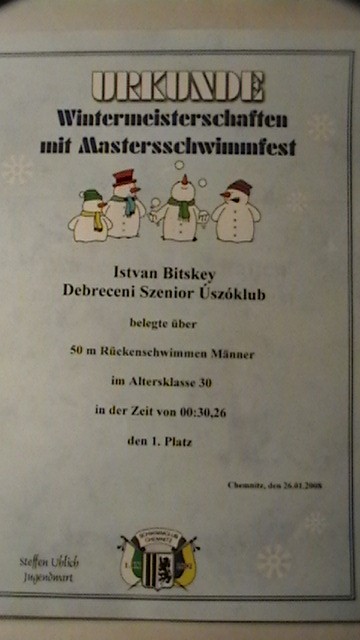 A verseny teljesen nyílt volt, a legfiatalabb úszóktól a szeniorokig bárki elindulhatott. A pályabeosztás a nevezési idők szerint történt, az értékelés természetesen korcsoportok szerint a fiataloknál és a szenioroknál is. 50,100,200 és 400m-es számok voltak. A verseny rendkívül jól szervezett volt, pörögtek a versenyszámok és az eredményhirdetések. 5 országból - német, litván, lengyel, bolíviai és magyar -, 28 egyesület, 272 versenyzője vett részt. A nem szeniorok-szeniorok aránya 90-10% volt a fiatalok javára. Minden korosztály első 6 helyezettje oklevelet kapott, de dobogóra csak az első három helyezett állhatott. Magyarországot ifj. Bitskey István képviselte Debreceni Szenior Úszóklub színeiben. A verseny helyszíne egy sportcentrum 50m-es, 8 pályás fedett uszodája volt. Én 50m háton indultam. 9 futamban, 72 versenyző, ebből összesen 5 szenior korú. Az időeredményem 00:30,26 mp lett. A szenior 2-es korcsoportot - egyedüli induló lévén - megnyertem, ha az összes időeredményt nézzük, akkor a 3. legjobb időt úsztam.