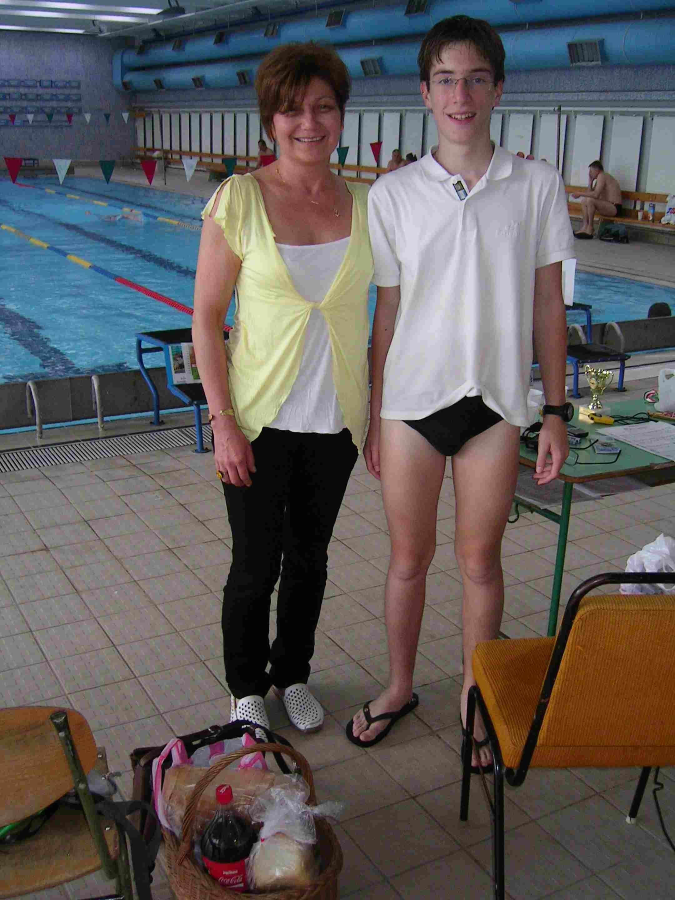 2008. 03. 17-18 33 órás váltóúszás Először hadd írjam le, hogy mi úton csöppentem bele a Debreceni Szenior Úszók illetve a Medúsza egyesület társaságába. Volt egy diákolimpia természetesen úszás. Az Újonnan épült uszodában volt megrendezve. Mivel már akkor is szerettem úszni jelentkeztem. Voltak dolgok, amik nélkül nem mehettem: fejesugrás stb. Édesanyám ill. Édesapám révén jutottam el Dr. Rentka László-hoz. Aki ma már a mentorom is egyben. Megtanított fejest ugrani, amit egyébként ma is nagyívben kerülök. Az „olimpián” 4. lettem 100 m gyorson. Laci bácsi érdeklődött e-mail útján, hogy milyen helyezést értem el. Azt is megírta, hogy vár a csapatba. Nos így kerültem be ebbe a légkörbe. A Verseny előtt nagyon izgatott voltam, hogy milyen lesz, nem fogok e unatkozni. Amint megérkeztem a helyszínre megnyugodtam. Már rögtön leesett az állam, amikor megláttam a táblát : „12 km” „x csapat”. Mondom rossz helyre jöttem. De közben leesett. Én a Medúsza Egyesület-be tartozom. Láttam, ahogy bemegy illetve, ahogy kijön a vízből Fodor György-öt. Sok új barátot szereztem. A Verseny csúcspontja az volt, amikor megkaptam a névre szóló különdíjat. Nagyon örülök neki. Volt viszont egy személy (direkt nem írom le), akivel akadt egy kis galiba, így elment. Szerintem aki ott volt, az tudja kiről van szó. Én összesen 7x úsztam. Nagyon élveztem. Az egész verseny alatt szinte ott voltam. Kivéve azt a maradék 3 órát, amikor hazamentem. Nagyon köszönöm ezt az élményt mindenkinek. Köztük: Dr. Rentka László Dr. Kappelmayer János Salamon Tibor Kiss Attila Szabó Attila Godó Soma Gyepesi István-->Nagyon finom volt a sajt. Fizil Ádám--> Sok sikert a vizsgákhoz. És persze: Hajós Alfrédnak Ha esetleg valakit kihagytam az nem dirket volt, de összefoglaló néven Köszönöm A Debreceni Szenior Úszóklubnak és a Medúszának. Szabó Benjámin