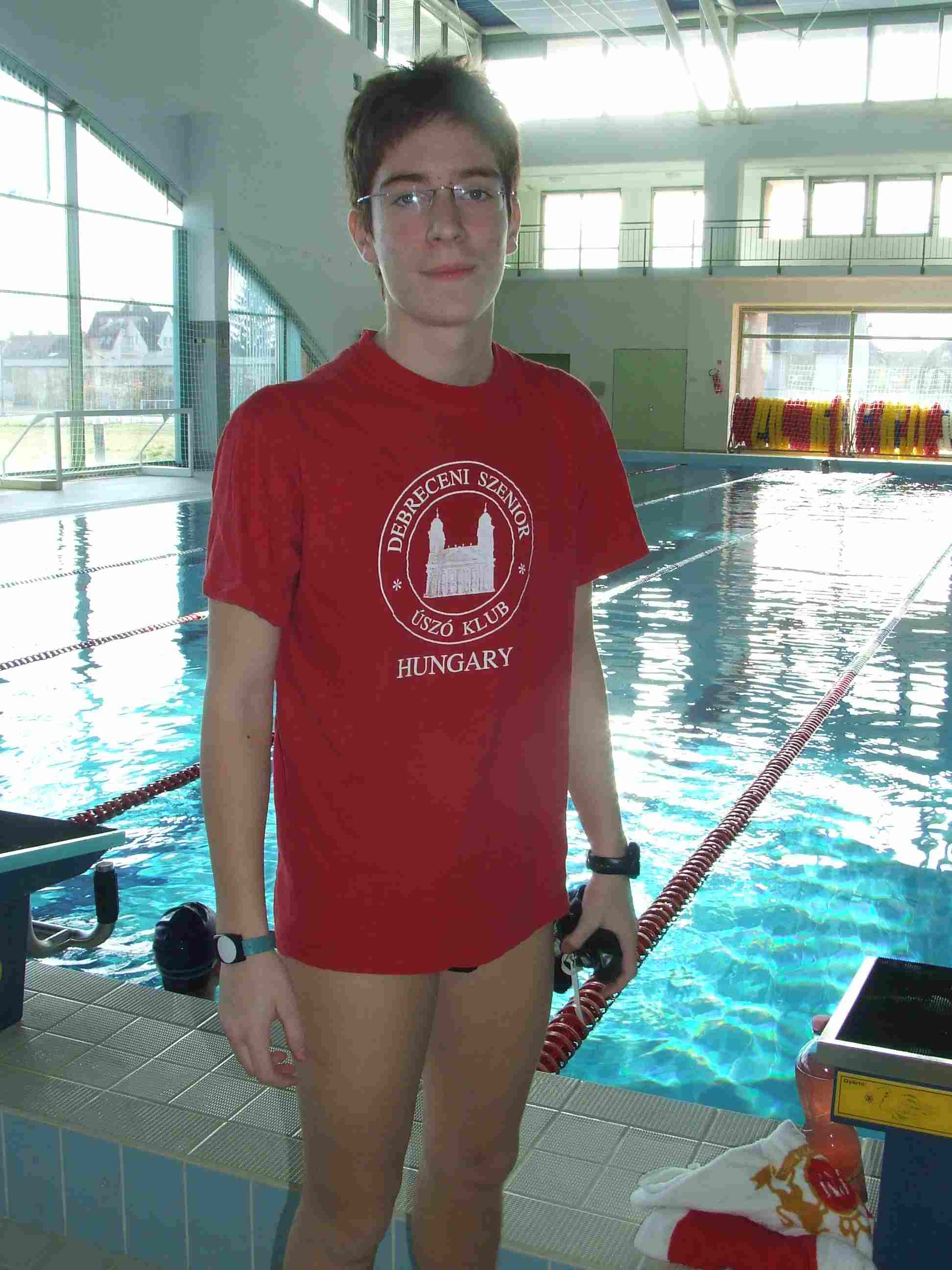 Ez az írásom több dologról fog szólni. Először is azt szeretném itt leírni, hogy amit a csapat nyújt nekem, az nagyon fontos nekem. Olyan inspirációt kapok minden edzésen, edzés után, hogy azért biztosan megéri ott lenni. De az edzésterv is nagyon jó, kellemes. Mondjuk ezt nem azért mondom, mert nekem olyan könnyedén menne. De jó leúszni. Tényleg. Főleg az, amikor kicsit szusszanunk és akkor beszélgetünk. De az biztos, hogy Laci bácsi az az ember, aki a legtöbbet segít. Ő mondjuk úgy érzi, hogy nem igazán mentorál engem. De nekem az ér a legtöbbet, hogy segít engem versenyekre vinni. Az utóbbi 3 hétben nem voltam edzésen. Ez annak tudható be, hogy felvételiztem és sajnos a betegségem kiújulni látszott. Ez egészen 2009. február 6-ig nem volt biztos, hogy kiújult-e. De szerencsére jött a Rafael Vidal emlékúszás és úgy gondoltam, hogy itt az ideje annak, hogy letegyek valamit az asztalra. Ezért elhatároztam, hogy az 5 km-es úszásomat minimum meg kell haladnom. Így magamban elhatároztam, hogy leúszom 8 km-t. Ez ma meg is történt. Reggel úgy keltem fel, hogy igen, ma megcsinálom. Bár kissé féltem, de eljött a 14 óra. 14 óra 15 perckor beléptem az uszodába. Gyorsan átöltöztem és rohantam be a medencetérbe. Ott bambán végigmentem és ezért nem vettem észre az éppen tárgyaló Laci bácsit. Vele megbeszéltem, hogy a 25 méteres medencében fogom leúszni és 1000 méterenként egy kicsit pihenni fogok. Nos, ez így ment egészen 6400 méterig, amikor elkezdték szétszedni a pályaelválasztó szalagokat és az egyik fiú majdnem eltalálta a fejemet. Ez megzavart és eléggé idegesített, mert ez elég nagy tetűség. Szerintem. De Laci bácsi rögtön intézkedett. Átmentem az 50 méteres medencébe. Ott 3 Celsius fokkal hűvösebb volt a víz és ez nagyon rosszul esett. Lassan eljött az utolsó 500 méter. Ott még nem éreztem semmi inspirációt, de aztán ez megváltozott. Lassan, de biztosan haladtam az utolsó 3 méter felé. Ezt pillangóban úsztam le. Nem volt sok, de 7997 méter után mégis az volt, nekem. Ezt az ötletet Fodor Gyuritól loptam el, a 12 órás úszáson. Így hát befejeztem a 8 km-es úszást. Holnap újabb 2 km-rel egészítem ki az eddigi teljesítményemet. Így meglesz a 10 km össztáv. Köszönöm a lehetőséget. Benji 2009-02-07 22:07 Ezelőtti írásomban elmeséltem a 8 kilométer leúszásának történetét. Most az azt követő 4 kilóméterrőlfogok írni. Másnap (vasárnap) reggel felkeltem és elballagtam az uszodába. Ott Laci bácsi nagy szeretettel fogadott. Sokat segített. A medencetérben, az üvegnél ott díszelegett Rafael Vidal-ról szóló írások tömkelege. (Amelyeknél Hétfőn fotózkodtam) Nos, belekezdtem a hosszú úszásba, amelyeket 1 illetve 1,5 km ként megszakítottam. Szinte az egészet gyorsban úsztam le. A 25 méteres medencében úsztam ezt le. Hamar eljöttek az utolsó méterek. Bevallom fájt a térdem, de különösebb bajom nem volt. A teljesített 4 km után még pihentem egy kicsit a vízben majd kiültem a partra, ahol Laci bácsi gratulált. Ez a teljesítmény (az én részemről) éppen elég. Tudom, hogy vannak olyanok ,akik 12 km-t egybe leúsznak.Nekem egyenlőre ez is elég. Természetesen még tervezek nagyobb megmérettetéseket. De ezeket majd később fogom végrehajtani. Most arra kell koncentrálnom, hogy a Berettyóújfaluban megrendezendő Megyebajnokságra készüljek. Azt is nagyon várom már, hiszen még egy érmet sem nyertem. Épp itt lenne az ideje. 100 m gyorson, és 50 m gyorson fogok indulni. Ki hozom majd magamból a legtöbbet, mint a Debreceni Szenior Úszóklub „a” tagja. Benji 2009. február 13. 22:35