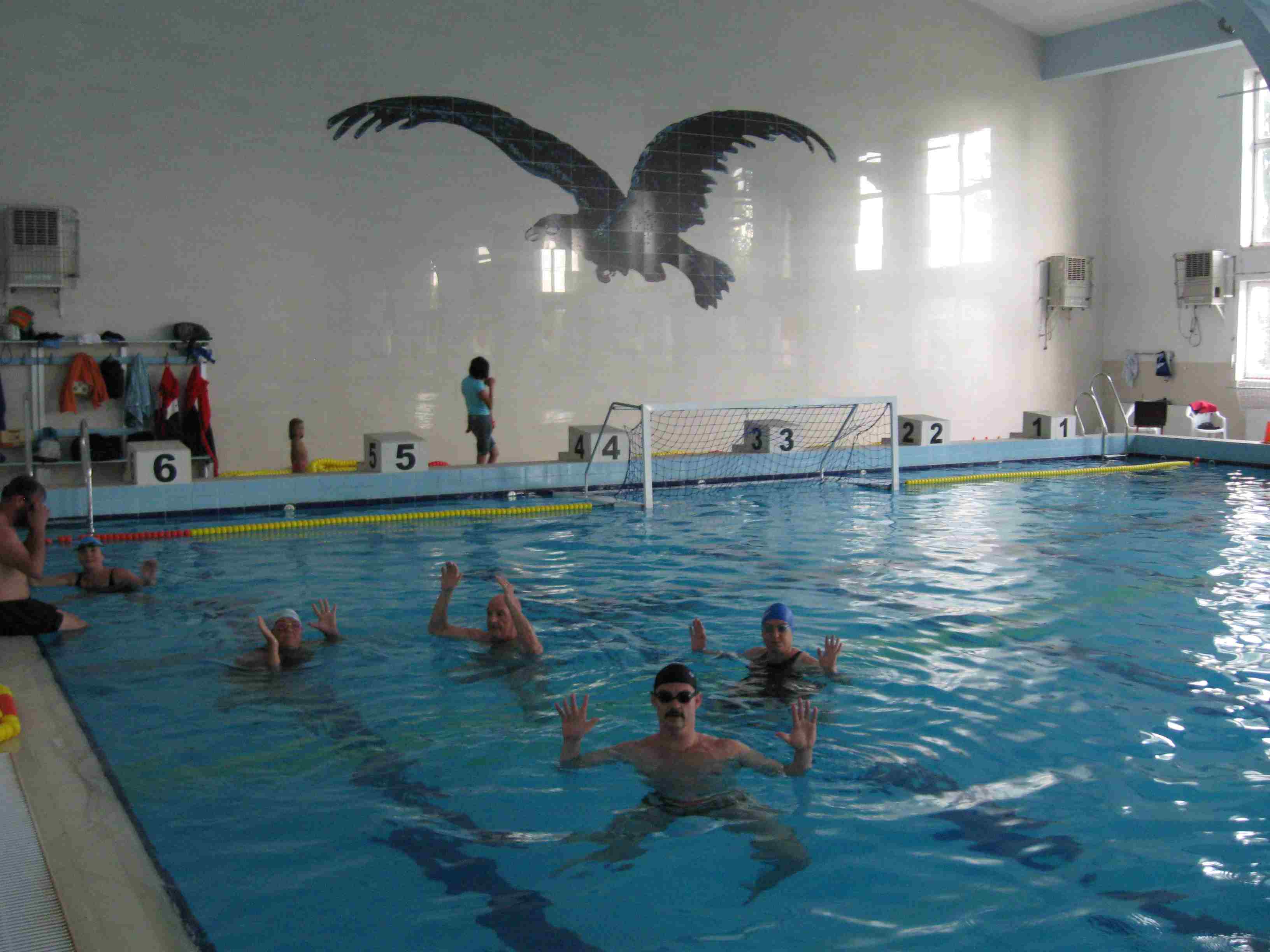 Szerencsére úsztunk is, minden nap kétszer. Ezen a képen a nagyváradi régi, 33 1/3 méteres uszodában végeznek rendhagyó